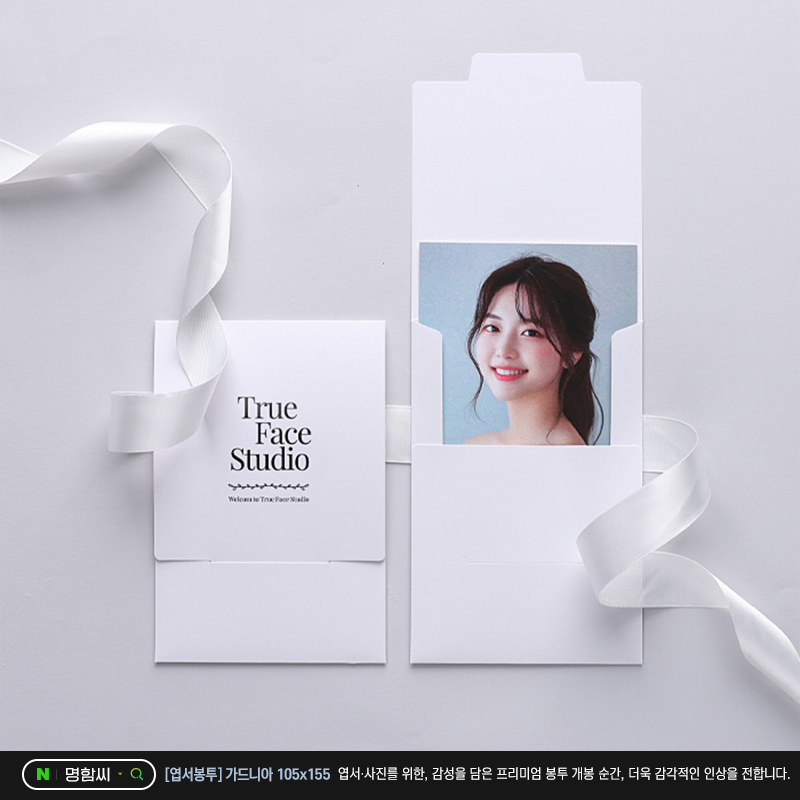 사진 스튜디오에서 작은 사이즈의 [증명사진 홀더] 프리지아 포켓(105x73)과 가드니아 봉투를 함께 사용하면 더욱 완성도 있는 패키지를 만들 수 있습니다.