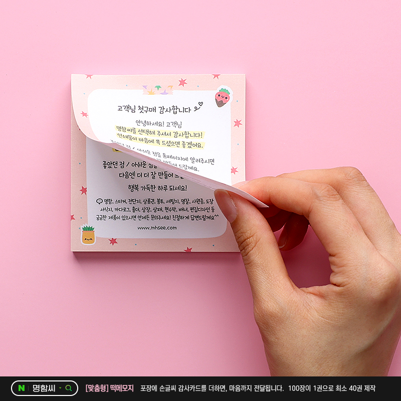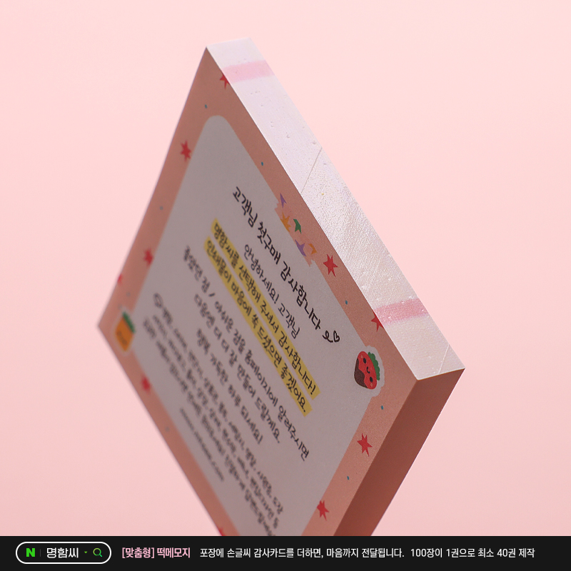 이번에 저희 명함씨는 구매해 주신 고객님께 감사의 마음을 전하고, 동시에 오래 기억되길 바라는 마음을 담아 떡메모지를 제작해 봤어요.