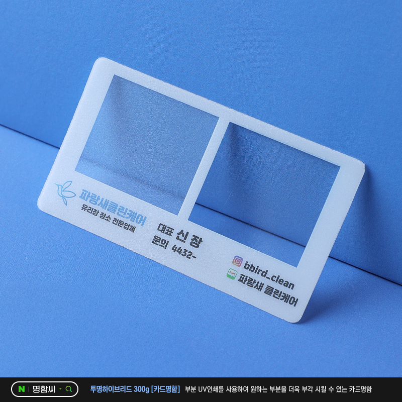 투명 하이브리드 명함은 청소업체, 택시, 여행사, 카페, 기업, 서비스업 등 다양한 업종에서 인기가 많아요.