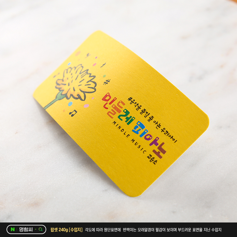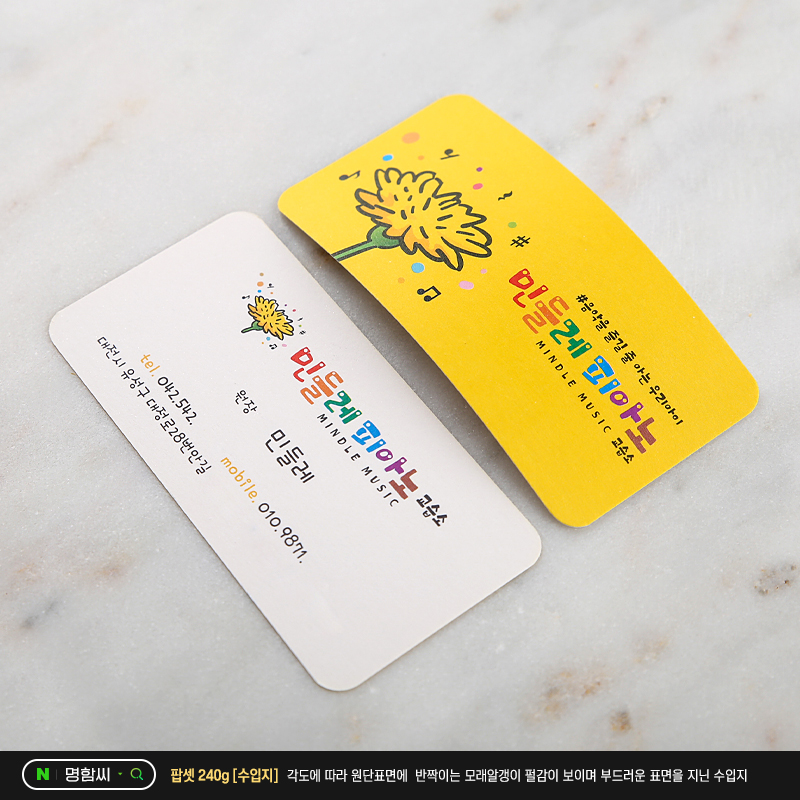 이번 고객님 역시 학원의 이름에서 착안해 "민들레"를 로고로 반영하여 제작해 드렸습니다. 덕분에 명함을 받는 순간, 학원의 이미지가 한눈에 각인될 수 있도록 완성되었답니다🌼