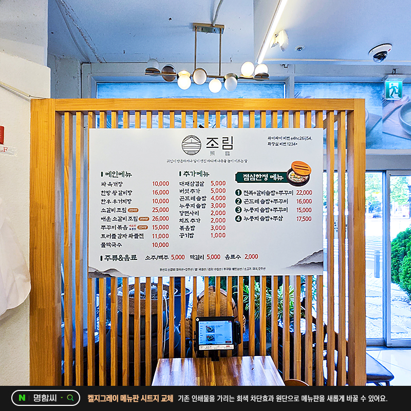 켈지 그레이 메뉴판 시공 후기에 대해서