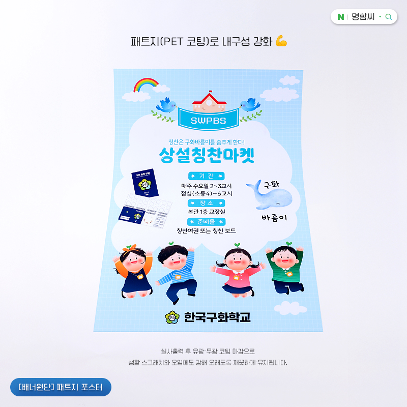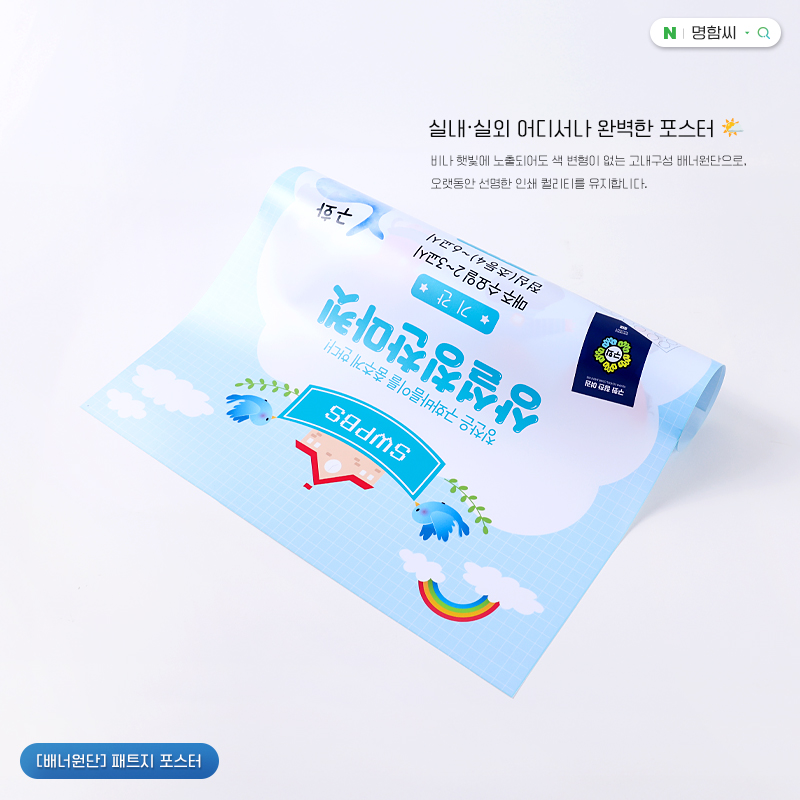 햇빛에도 변색 없이 선명한 패트 포스터로 완성하세요.