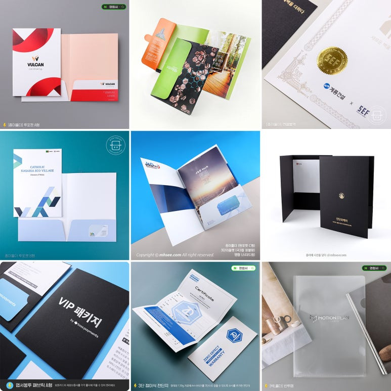 - 후가공 옵션: 금박 / 은박 / 청박 / 녹박 / 홀로그램박 / 엠보싱 등 24종