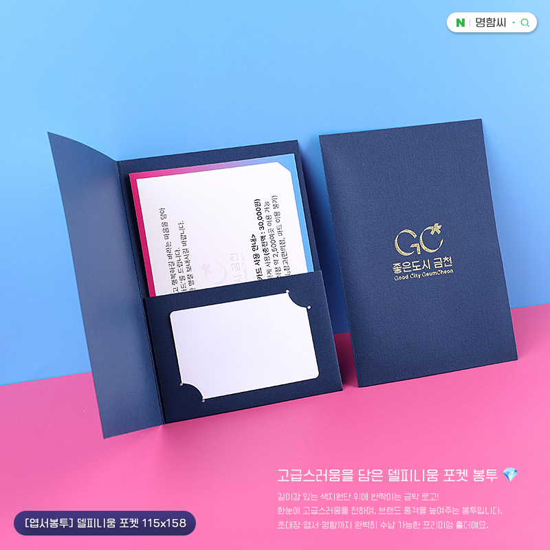 "델피니움 포켓 115x158" 봉투 제작 사례를 소개해 드릴게요.