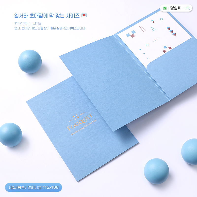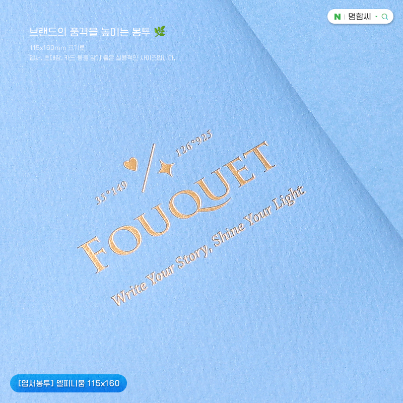색지원단과 금박 등 박가공으로 완성하는 [엽서봉투] 델피니움 115x160. 종이 23종 선택, 200매부터 맞춤제작, 제작 7~10일(속지 별도), 대량 견적 가능