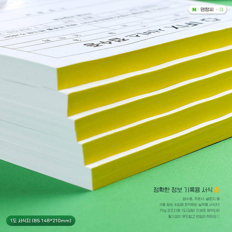 카본지를 따로 넣지 않아도, 필기 압력만으로 아래 용지에 내용이 복사되는 서식 용지입니다.