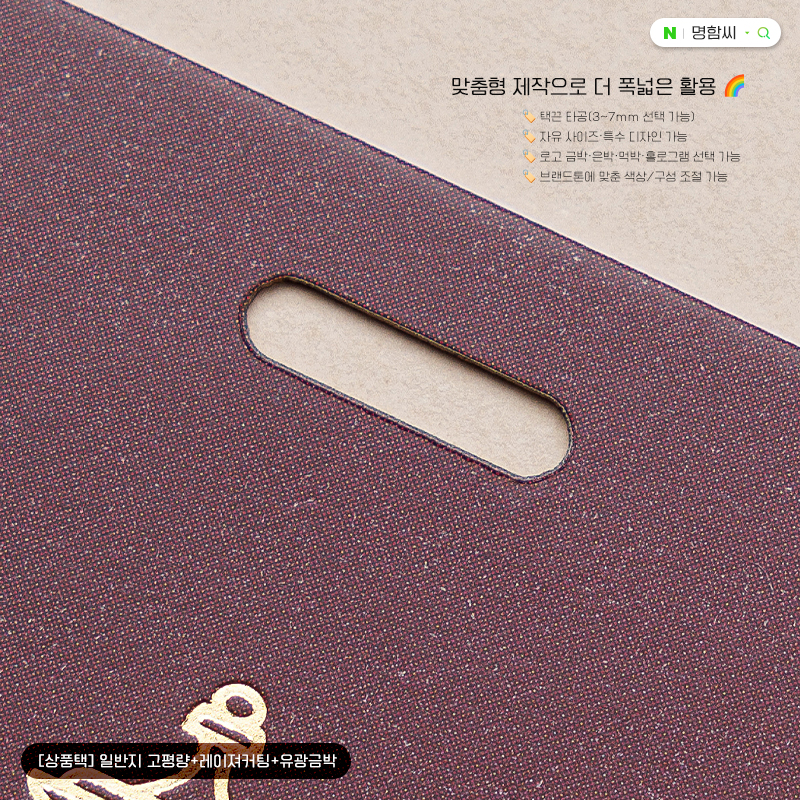 오늘은 400g 고평량 종이 + 유광금박 + 레이저 커팅으로 완성된 프리미엄을 상품택(행택)을 소개해 드릴게요.