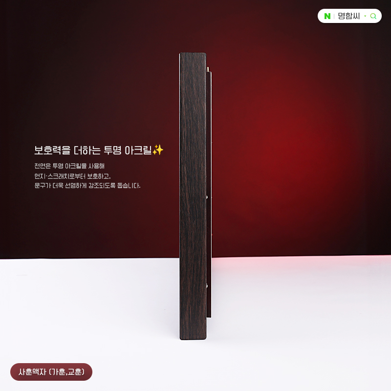 명함씨 액자는 고급스러운 2중 프레임 구조로 제작되어, 액자 자체만으로도 훌륭한 인테리어 오브제가 됩니다.