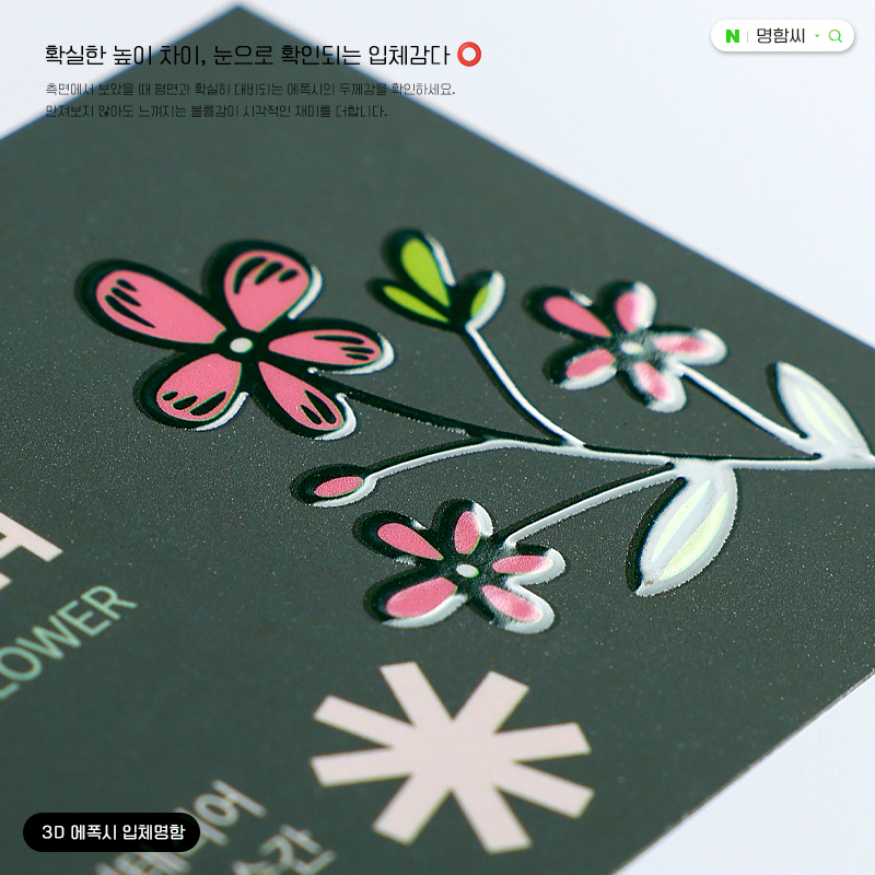 오늘은 시각적인 화려함은 물론, 자꾸만 만지고 싶은 부드러운 촉감까지 모두 잡은 3D 에폭시 입체 명함을 소개해 드릴게요~!