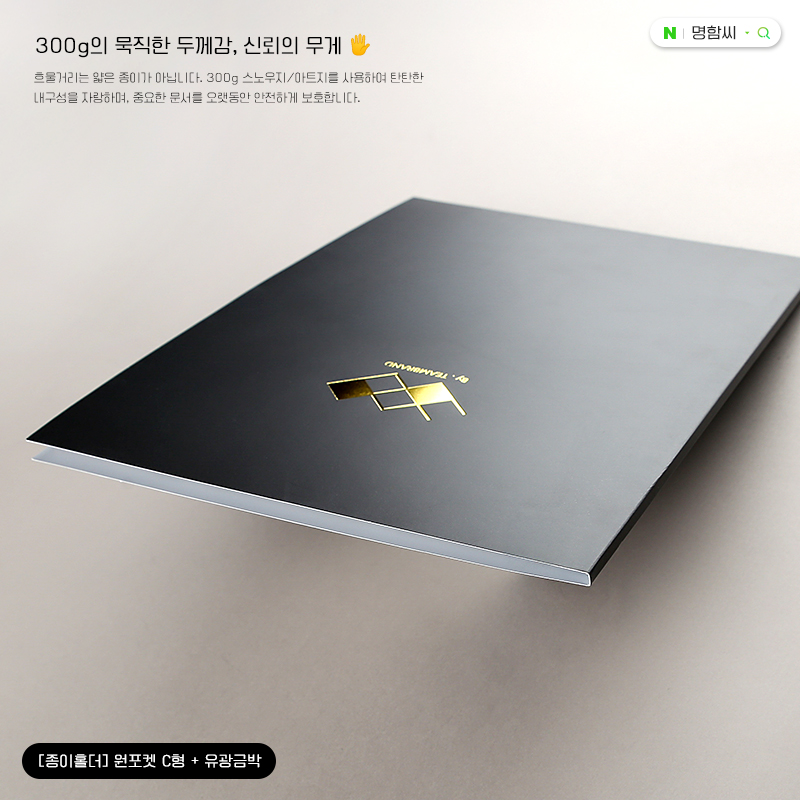 일반 용지보다 훨씬 두꺼운 300g 고중량 용지를 사용하여 시간이 지나도 휘어짐 없이 형태를 유지합니다.