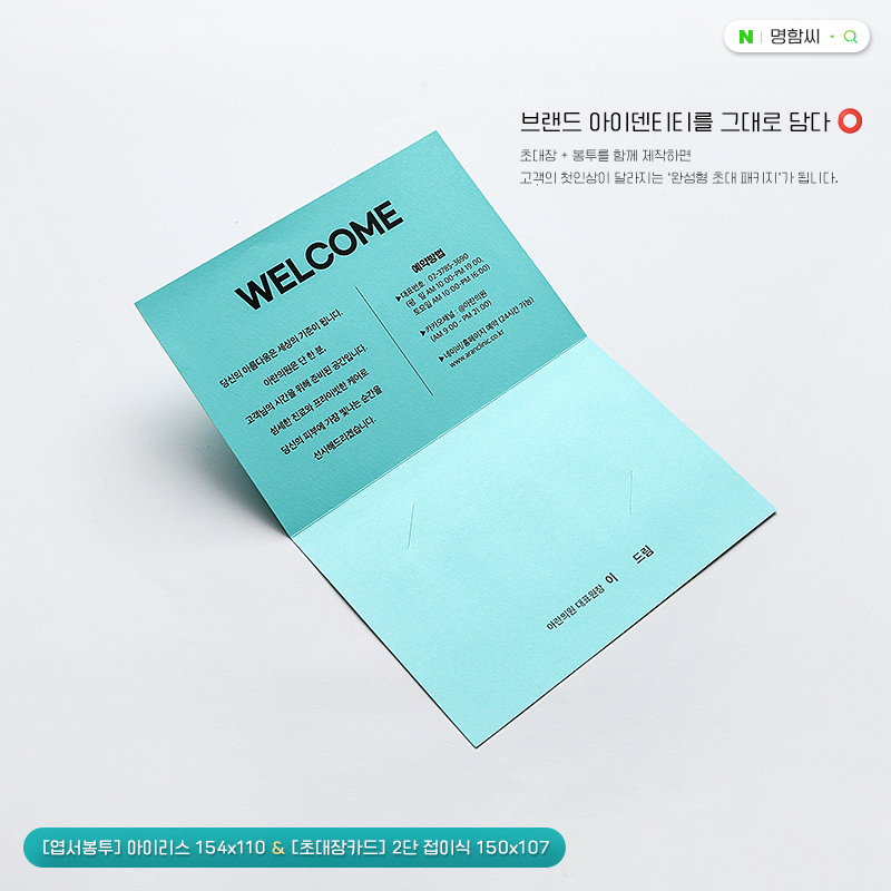 2단 접이식 초대장 카드 150x107 제작 | 고급 행사·메뉴판용 접지 카드 - 명함씨