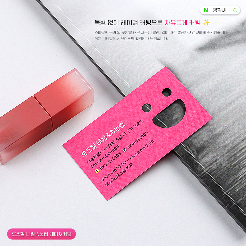 로즈힐 네일·속눈썹 레이져 명함 제작 | 뷰티/정밀 커팅/럭셔리 입체 디자인 - 명함씨