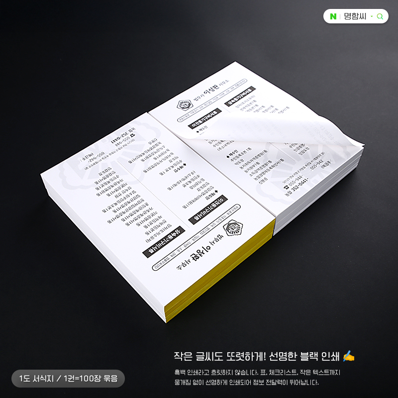 1도 서식지 제작 | 흑백 양식지 & 단색 영수증 인쇄 - 명함씨