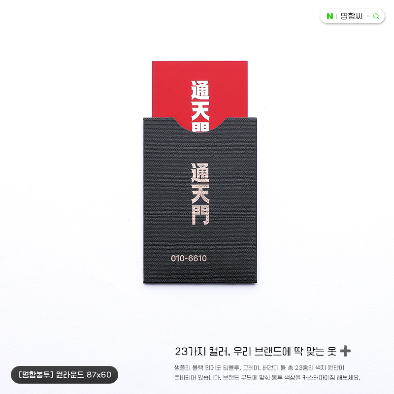 컬러 인쇄가 불가능하기 때문에, 박가공 선택이 필수입니다.