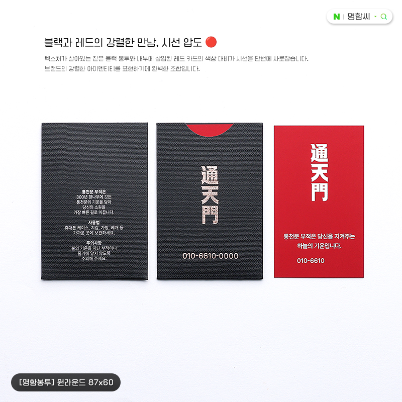 부적은 강렬한 레드컬러와 용지로 매치하여 반전 매력을 선사합니다.