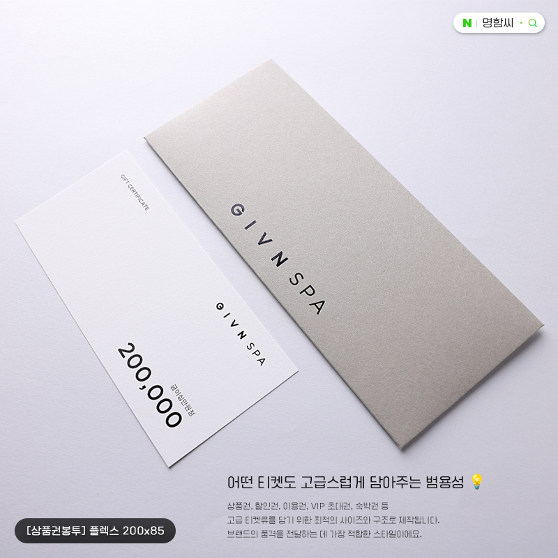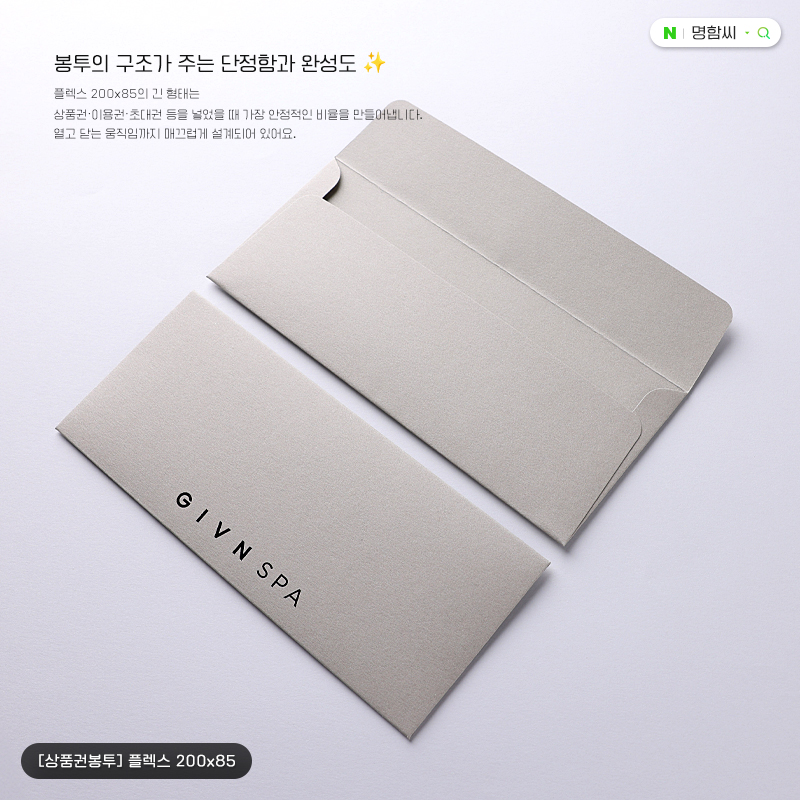 플렉스 봉투 200x85 제작 | 티켓·항공권·대형 바우처용 장형 디자인 - 명함씨