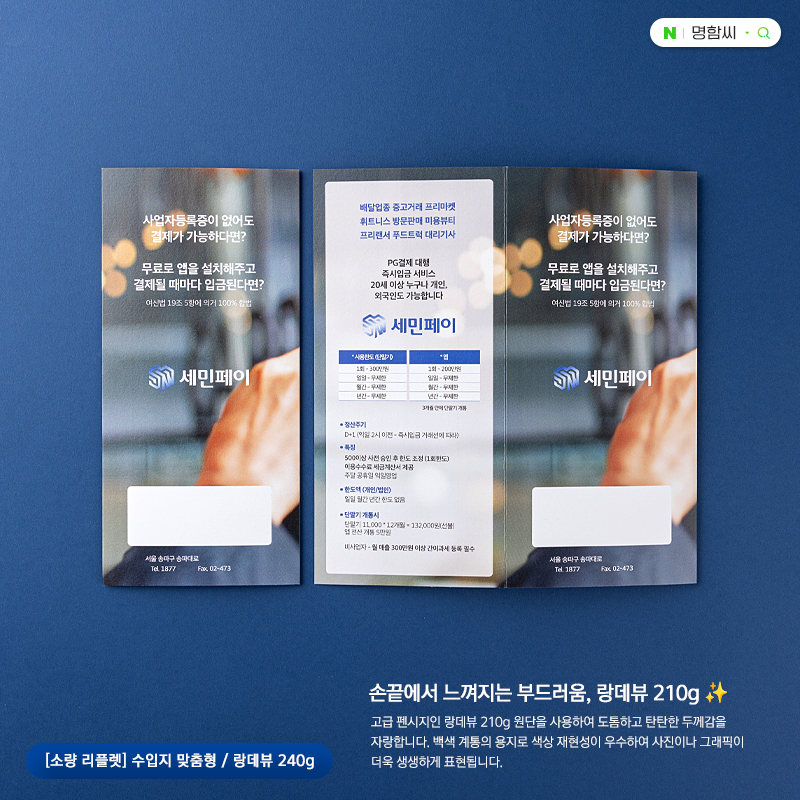 소량 리플렛 제작 | 200매부터 만드는 고급 랑데뷰 3단/2단 팜플렛 - 명함씨