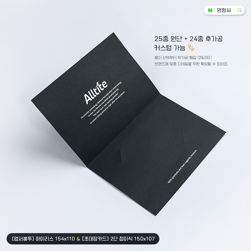 2단 접이식 초대장 카드 150x107 제작 | 고급 행사·메뉴판용 접지 카드 - 명함씨