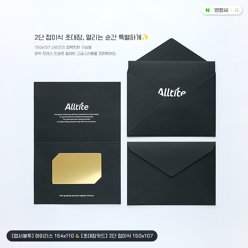 매직블랙 용지에 무광은박을 더한 조합은 특유의 고급스러운 덕분에 선호도가 높습니다.