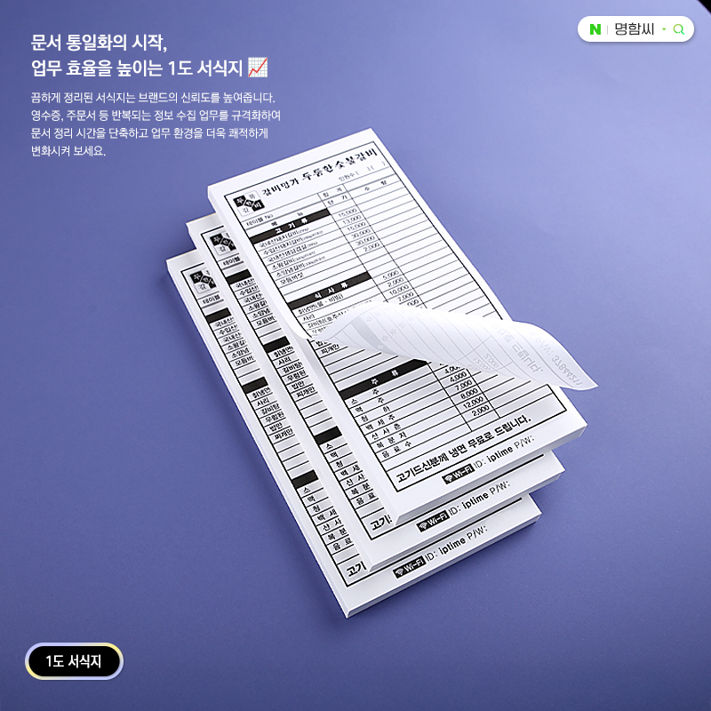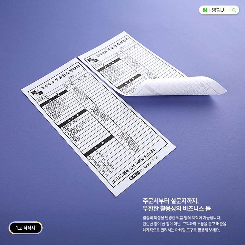 1도 서식지 제작 | 흑백 양식지 & 단색 영수증 인쇄 - 명함씨