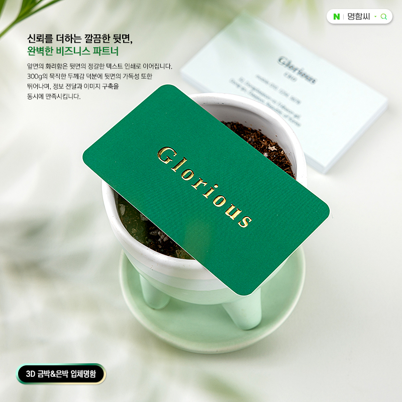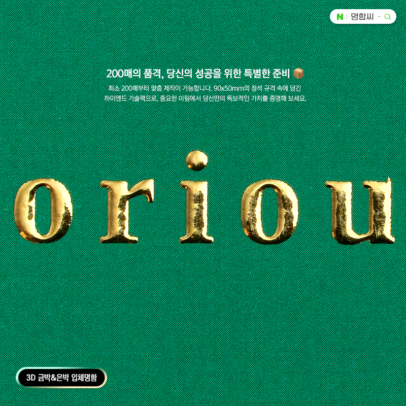 3D 금박 입체명함 | 200매 기본·90×50mm·금박 및 은박 선택 | 명함씨