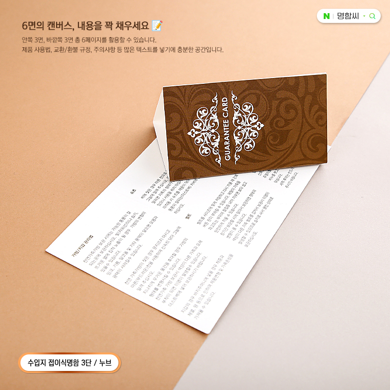 3단 접이식 명함은 총 6면을 디자인할 수 있어요.