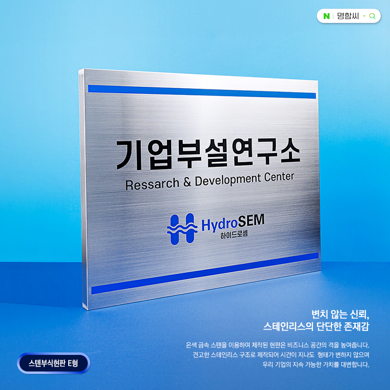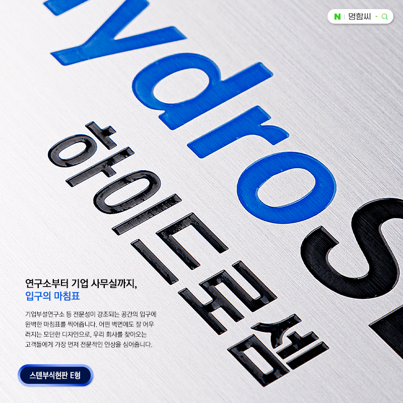 아크릴보다 튼튼하고 청동보다 세련된 명함씨 스텐부식 현판 E형으로 공간의 가치를 높여보세요!