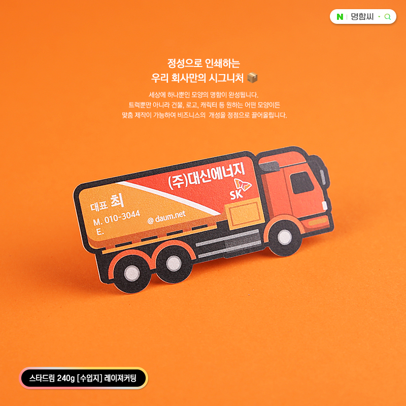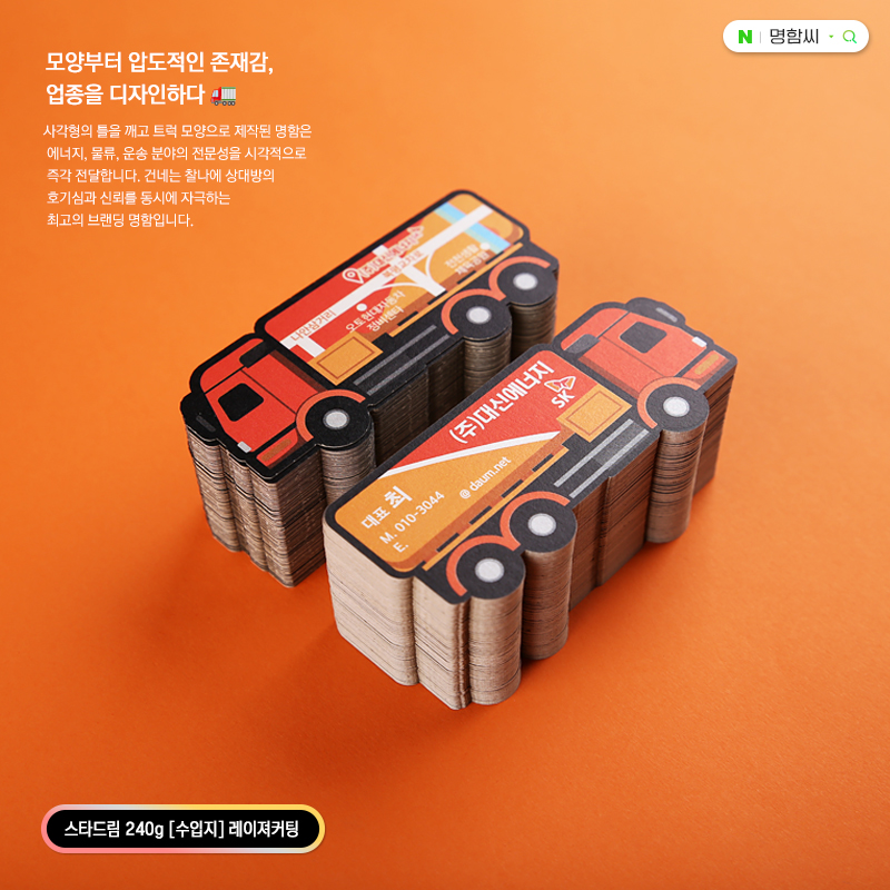 오늘은 에너지, 물류, 운송 업계 종사자분들이 보자마자 감탄하시는 '트럭 모양 레이저 커팅 명함' 제작 사례를 소개해 드립니다!
