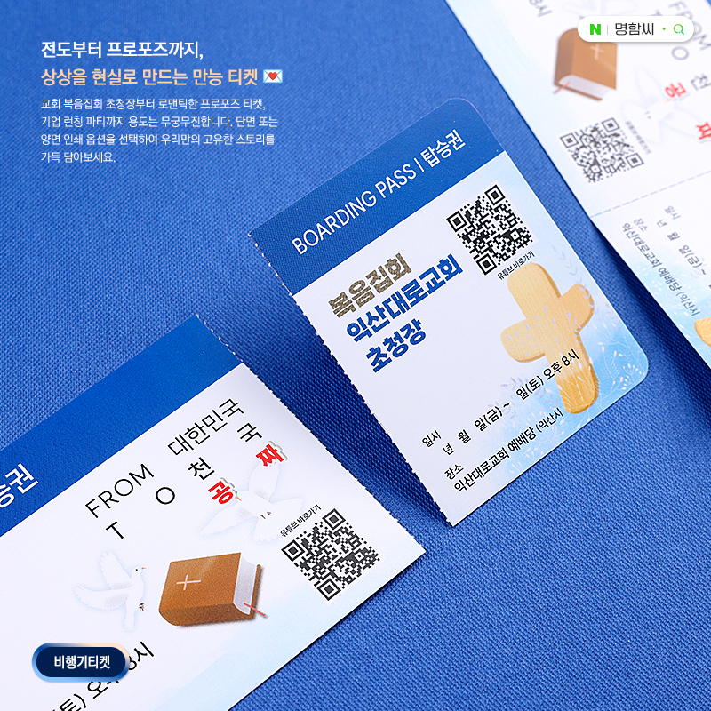 오늘은 명함씨의 베스트셀러 중 하나인 비행기 티켓형&홍보물 제작 사례를 소개해 드릴게요!