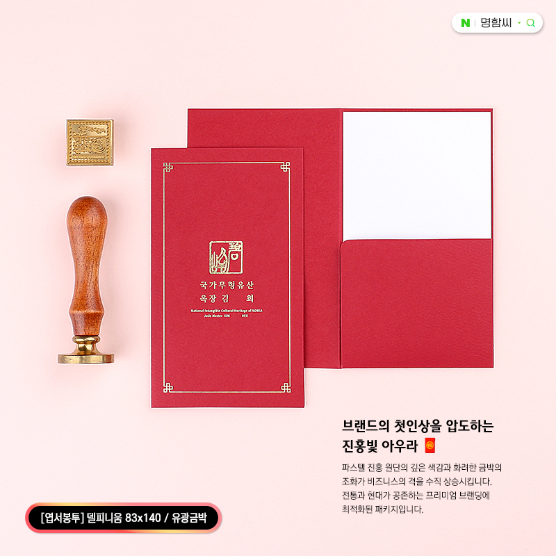 이번 제작에는 차분한 레드톤의 파스텔 진홍 용지를 사용하여, 프리미엄 브랜드의 깊이 있는 이미지를 한층 더 극대화했습니다.