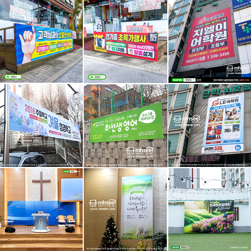 인두기로 깔끔하게 마감하여 실내용 현수막으로 추천해요.